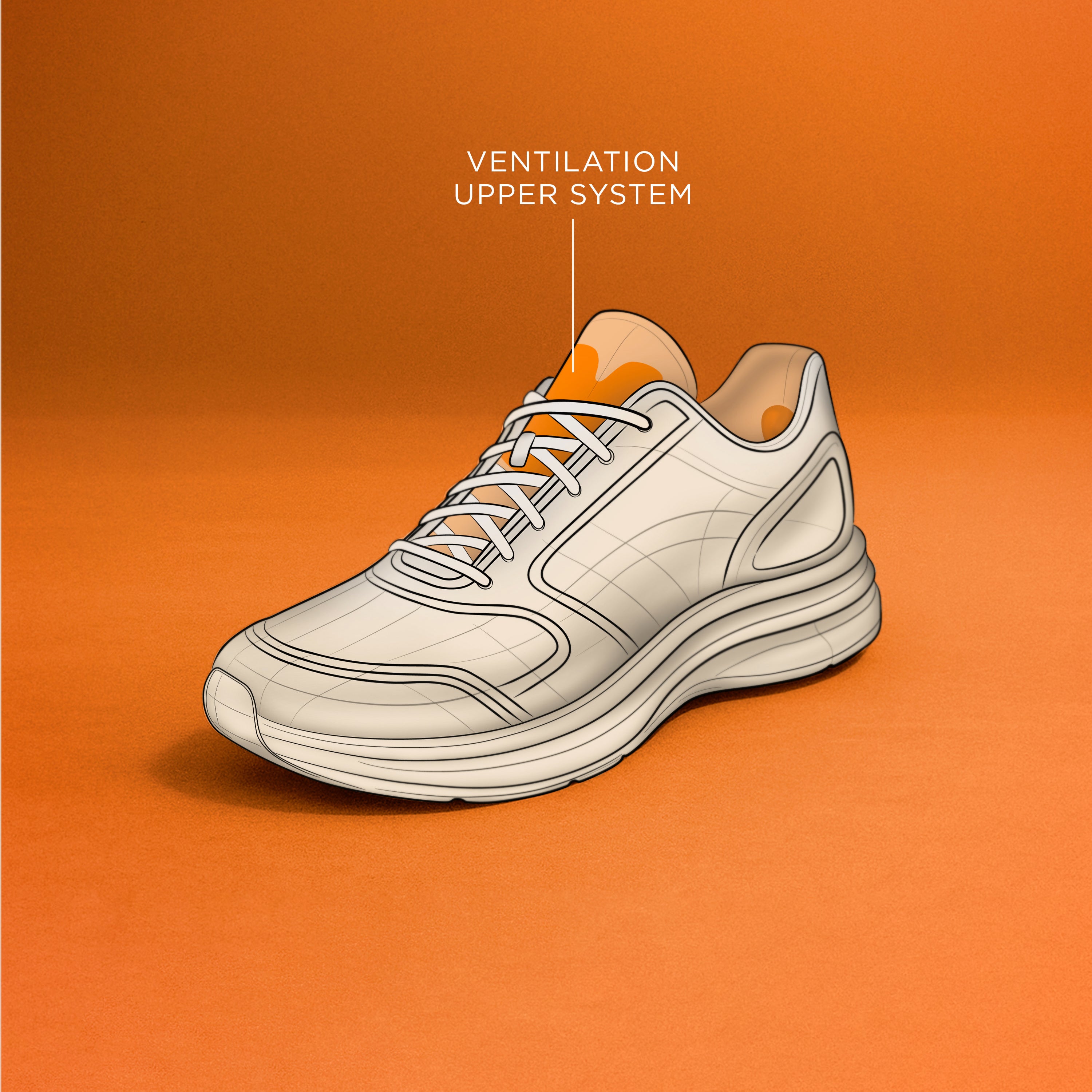 The Ventilation Upper System incorporates specialized air channels within the lining of the upper and tongue, effectively promoting air circulation throughout the interior of the shoe.